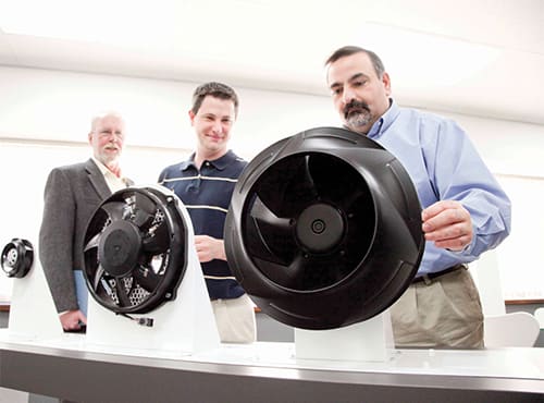 Radial fans, on the other hand, are better equipped to handle this task. “The main difference between an axial and radial fan is the direction of the resulting airflow,” says Riker. But how does a radial fan work? “As air goes into a radial fan, it is then pushed out at a 90-degree angle. This enables the fan to push the air much harder through restrictions.” The most common type of radial blade fan is called a backward curved impeller, which is often used in air-conditioning and ventilation applications.