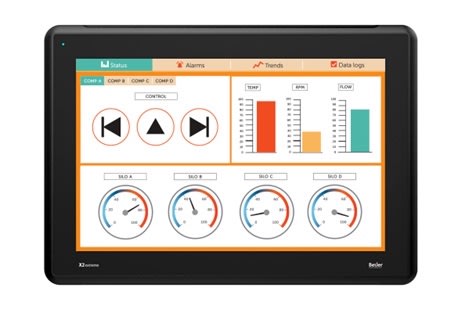 Beijer Electronics X2 Series HMIs (pictured) feature robust die-cast aluminum form factors designed to withstand mechanical stresses and extreme temperatures. They also have IP65/66, NEMA 4X/12, UL50E Type 4X/12, and marine protection ratings ideal for demanding industrial environments and UL, CE, FCC, and KCC certifications to ensure quality assurance and global compliance. Additional features include LCD touchscreens with customizable interfaces, integrated IEC 61131-3 PLC functionality for enhanced control, and ARM processors that deliver swift program execution and screen transitions, which is essential for complex visualization tasks.