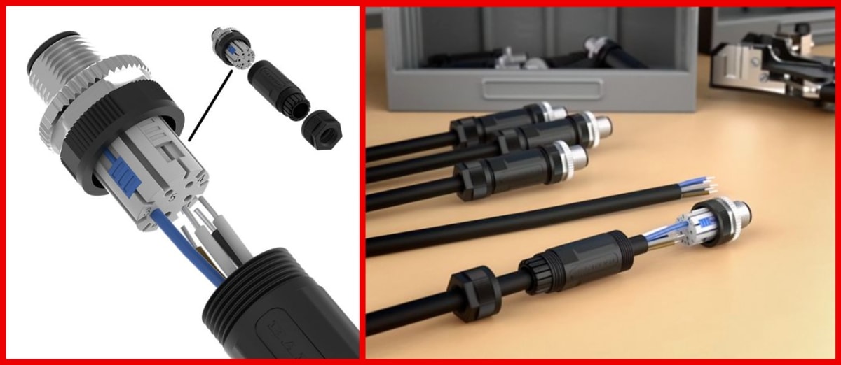The tricky thing about connectivity solutions is that they’re usually the last thing people think about when they’re designing a machine — even though power connections, at the very least, are essential for operation. So, they build the whole thing and then realize that they have to connect it to a power source, and maybe even other equipment and devices. Cordsets with overmolded connectors (inset) often make for the best long-term connectivity solution, but they tend to come in a limited variety of lengths. So, in cases like these, field-wireable connectors can come in handy because they can attach to any length of raw cable, which makes it easy to adjust to the exact length you need. Their flexibility also proves useful as things change and you scale your production.