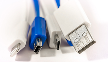 - USB: Universal Serial Bus, a faster and more advanced implementation of serial, with several types.
